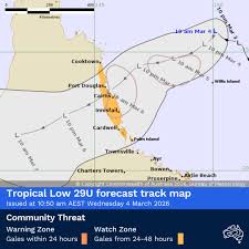 Tropical low 29U is attracting attention because of its potential to strengthen and affect coastal areas off Australia’s North Tropical Coast. Tracking such lows is important for communities, marine interests and authorities because development into a tropical cyclone can bring changes in wind, sea conditions and weather patterns. Current public posts and situational notes indicate a moderate chance of development and a possible influence on conditions by Friday.